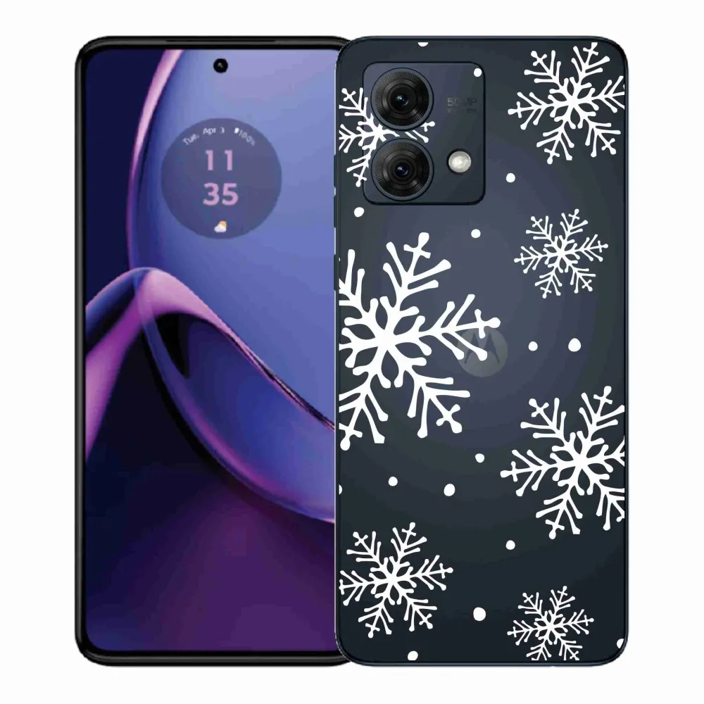 Pružný gelový obal mmCase s obrázkem na Motorola Moto G84 5G - bílé vločky na průhledném pozadí