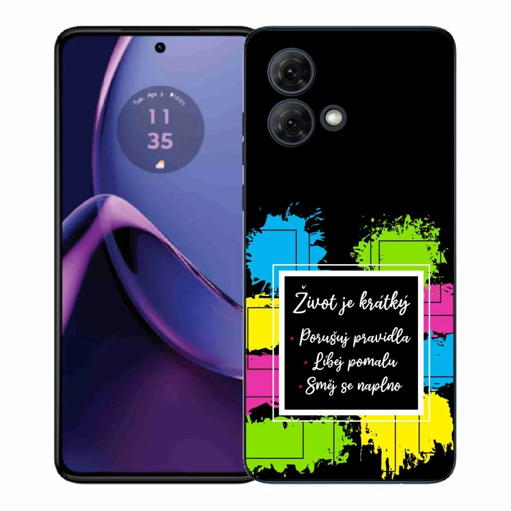 Pružný gelový obal mmCase s obrázkem na Motorola Moto G84 5G - citát 5 černé pozadí