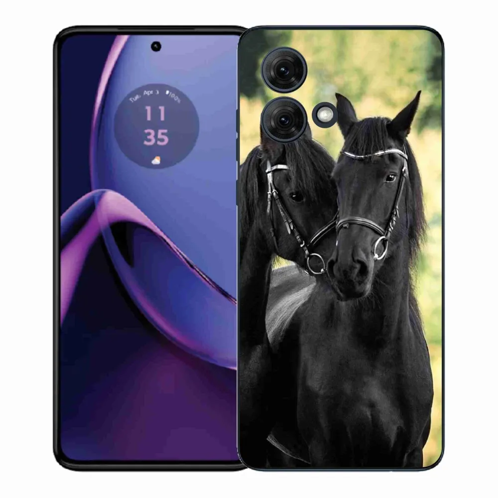 Pružný gelový obal mmCase s obrázkem na Motorola Moto G84 5G - dva černí koně