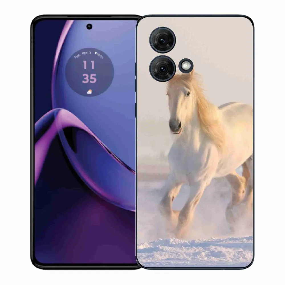 Pružný gelový obal mmCase s obrázkem na Motorola Moto G84 5G - kůň ve sněhu