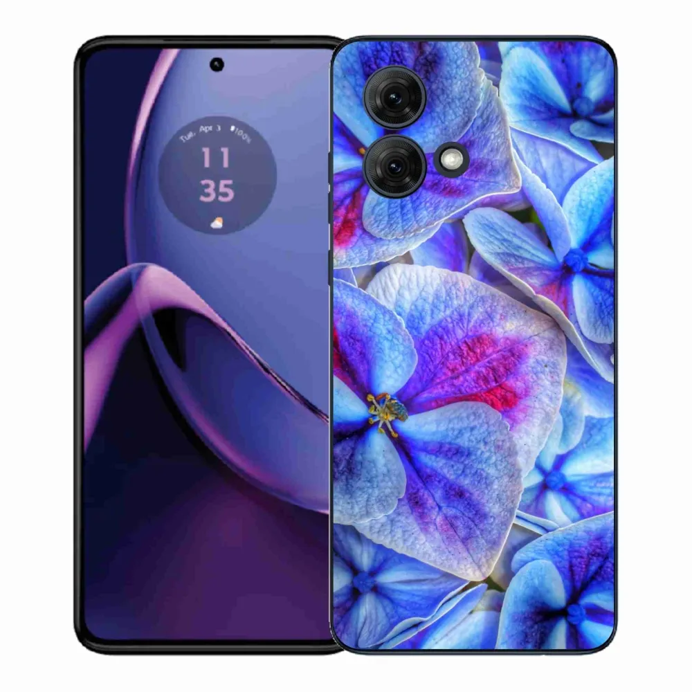 Pružný gelový obal mmCase s obrázkem na Motorola Moto G84 5G - modré květy 1