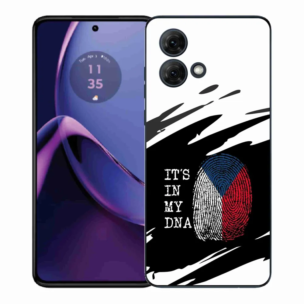 Pružný gelový obal mmCase s obrázkem na Motorola Moto G84 5G - vlajka otisk prstu černobílé pozadí