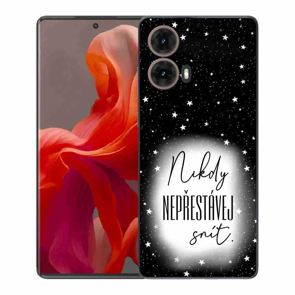 Pružný gelový obal mmCase s obrázkem na Motorola Moto G85 5G - citát 1 bíločerné pozadí