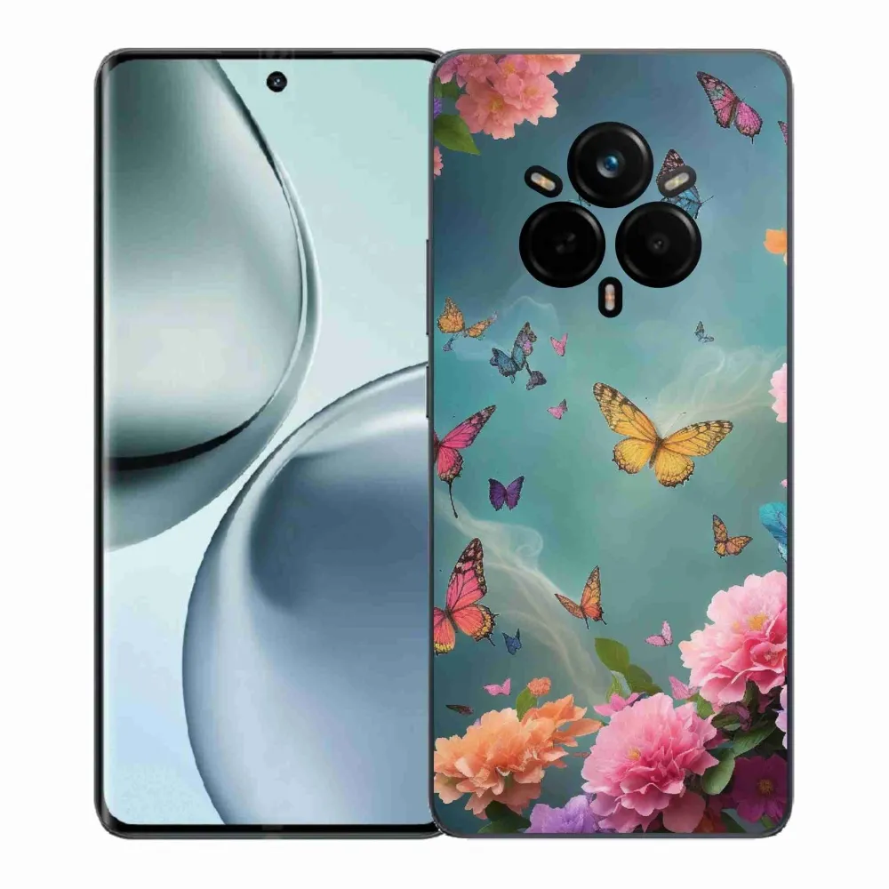 Pružný gelový obal mmCase s obrázkem na mobil Realme 14 Pro+ 5G - barevné květy a motýli