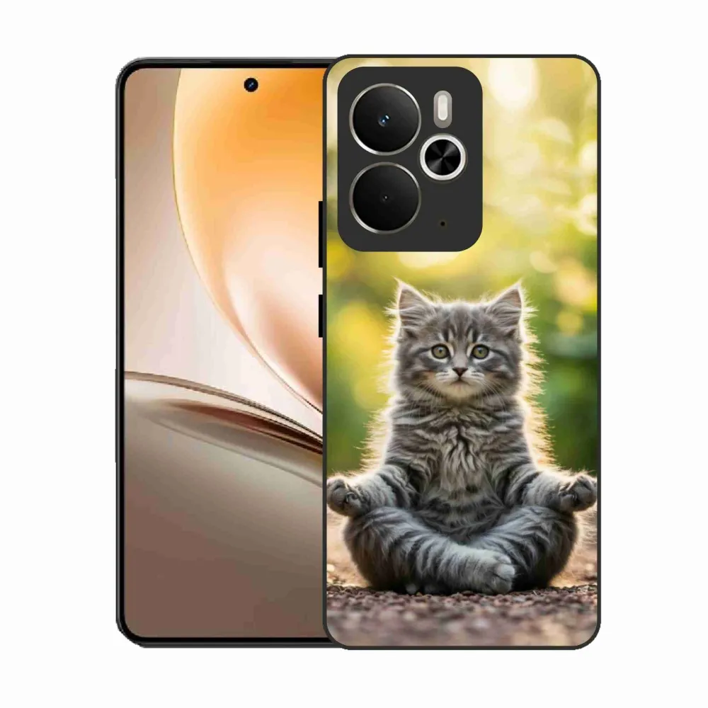Kočičí pouzdro na Realme 14T 5G/14 5G - meditující kotě poskytuje všechny výhody gelových obalů, a to v zajímavém designu.