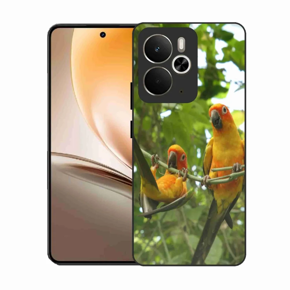 Ptačí pouzdro na Realme 14T 5G/14 5G - papoušci aratingy poskytuje všechny výhody gelových obalů, a to v zajímavém designu.
