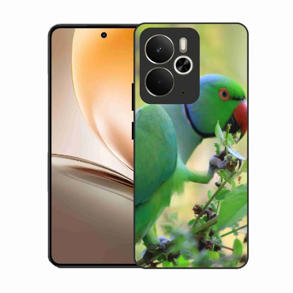 Ptačí pouzdro na Realme 14T 5G/14 5G - papoušek alexandr poskytuje všechny výhody gelových obalů, a to v zajímavém designu.