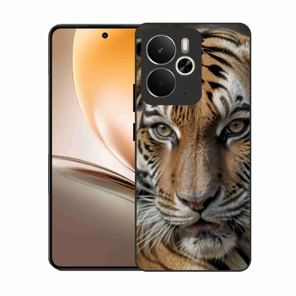 Kočičí pouzdro na Realme 14T 5G/14 5G - tygří pohled poskytuje všechny výhody gelových obalů, a to v zajímavém designu.