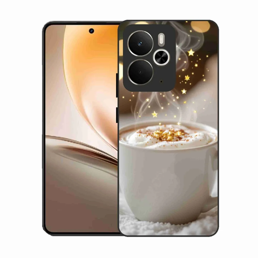 Vánoční pouzdro na Realme 14T 5G/14 5G - vánoční horký nápoj poskytuje všechny výhody gelových obalů, a to v zajímavém designu.