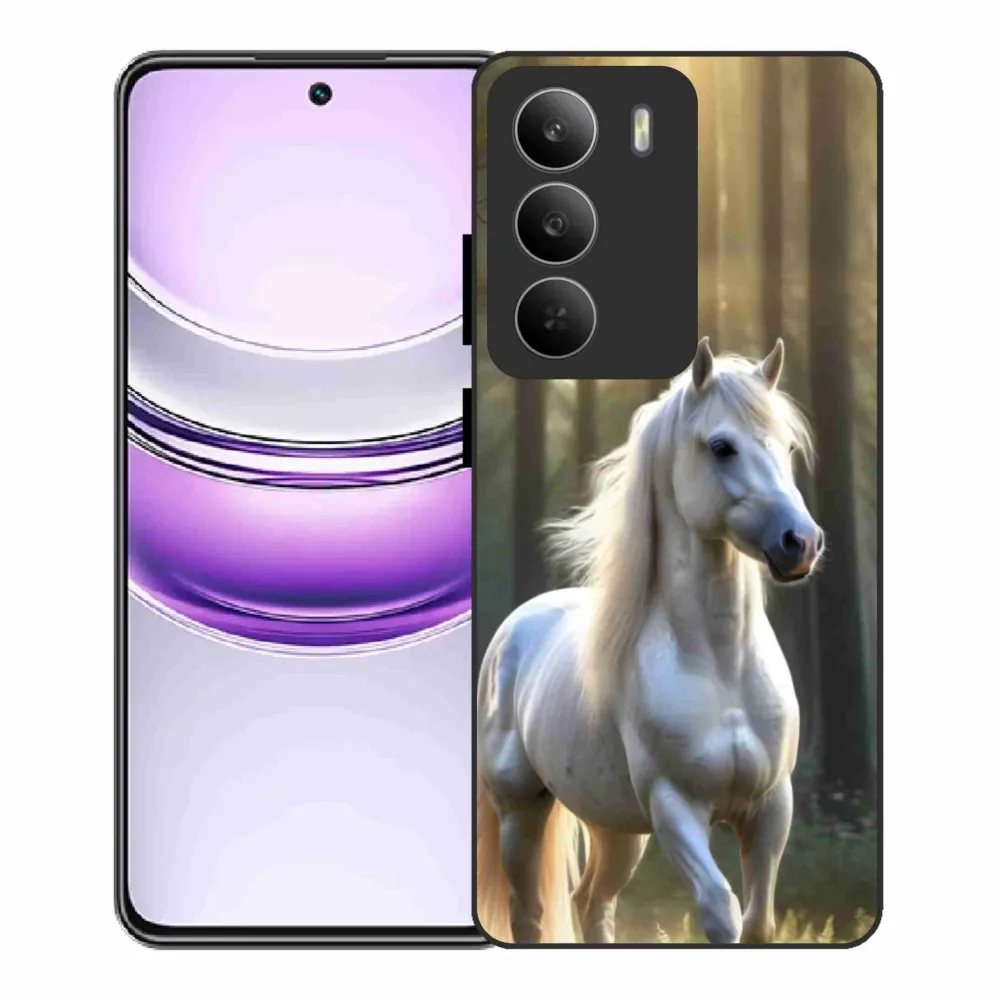 Pružný gelový obal mmCase s obrázkem na Realme 14x 5G - bílý kůň 3