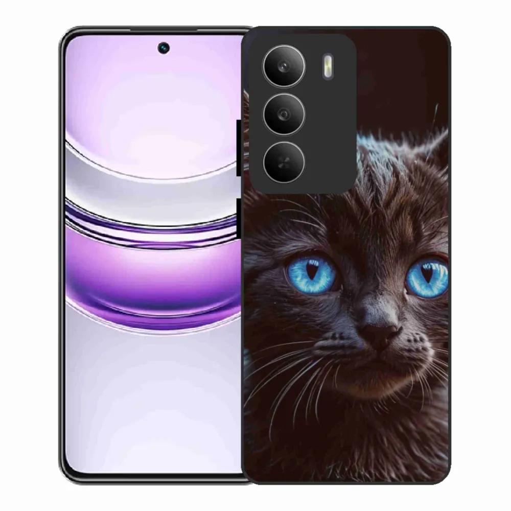 Pružný gelový obal mmCase s obrázkem na Realme 14x 5G - černé kotě 2