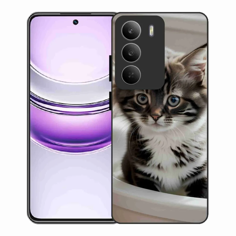 Pružný gelový obal mmCase s obrázkem na Realme 14x 5G - zvědavé kotě