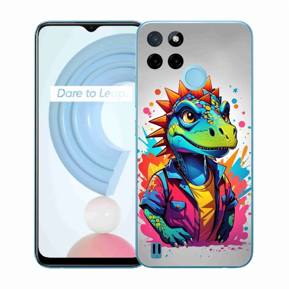 Zvířecí pouzdro na Realme C21Y/C25Y - barevný dinosaurus poskytuje všechny výhody gelových obalů, a to v zajímavém designu.