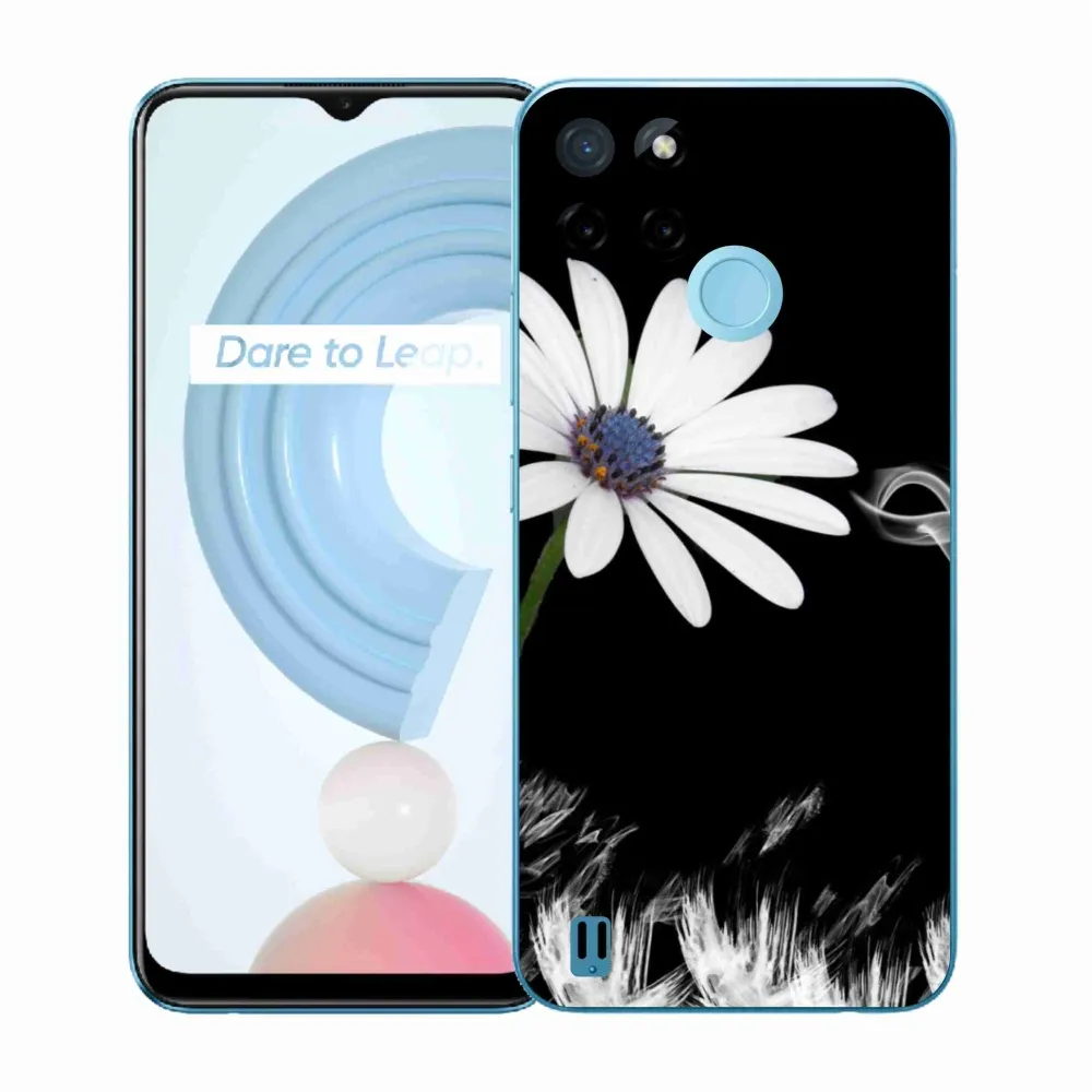 Květinové pouzdro na Realme C21Y/C25Y - bílá květina poskytuje všechny výhody gelových obalů, a to v zajímavém designu.