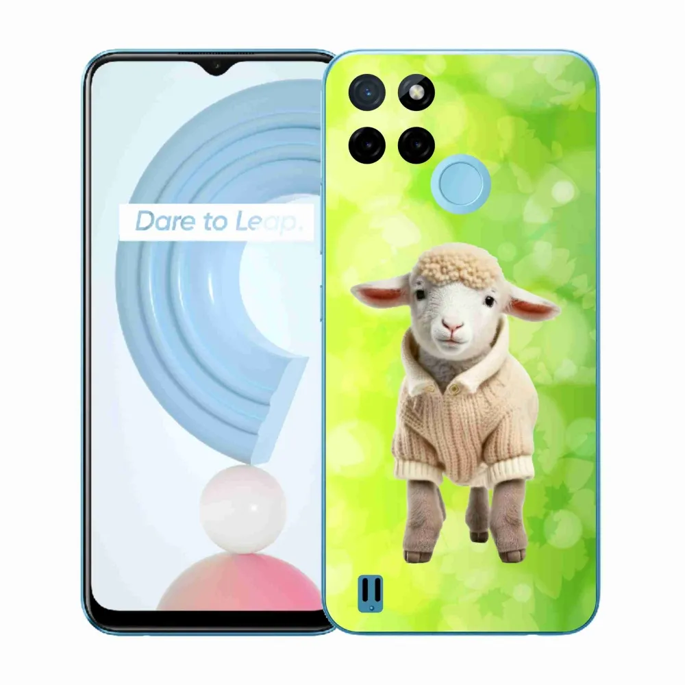 Zvířecí pouzdro na Realme C21Y/C25Y - jehně ve svetru poskytuje všechny výhody gelových obalů, a to v zajímavém designu.