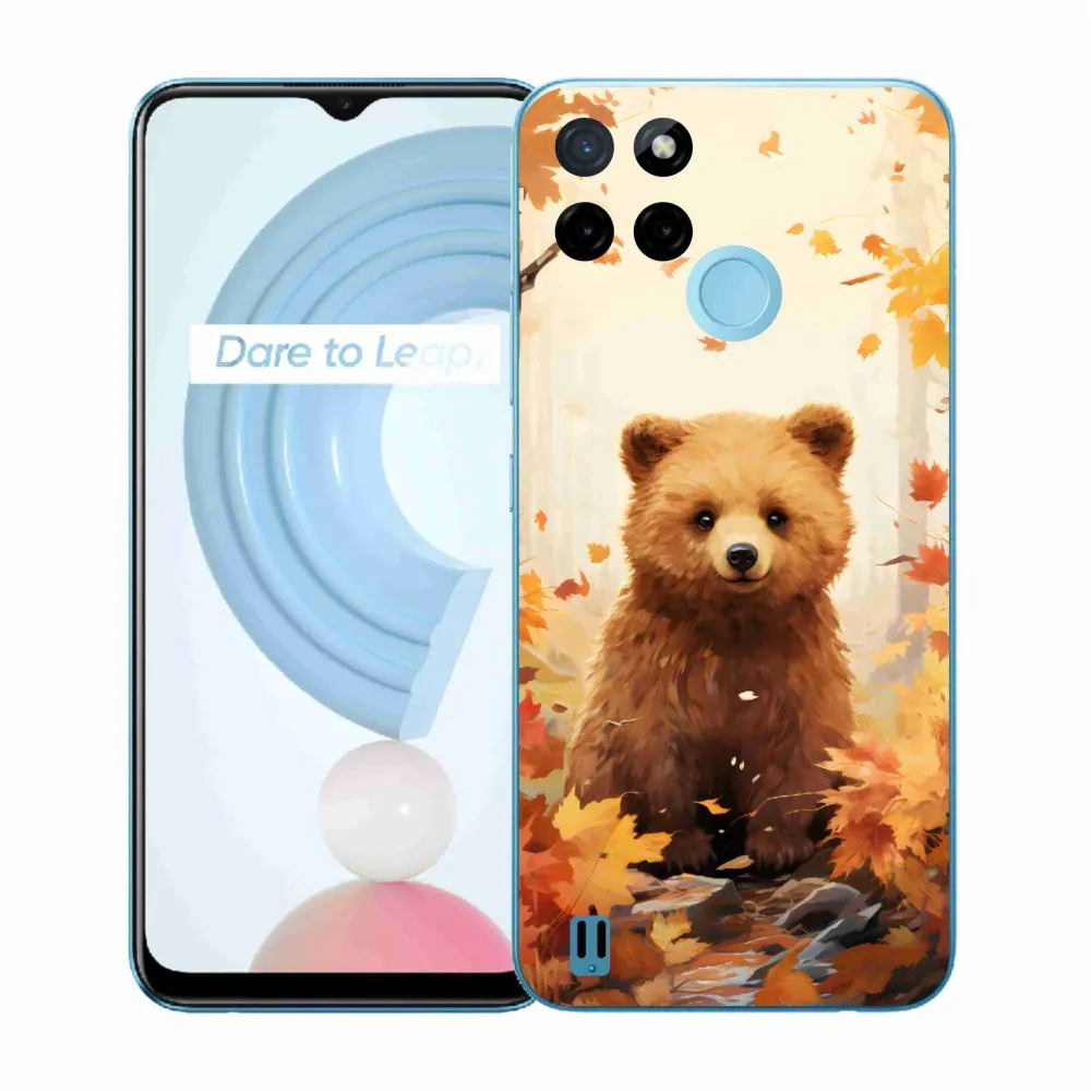 Zvířecí pouzdro na Realme C21Y/C25Y - medvěd v lese poskytuje všechny výhody gelových obalů, a to v zajímavém designu.