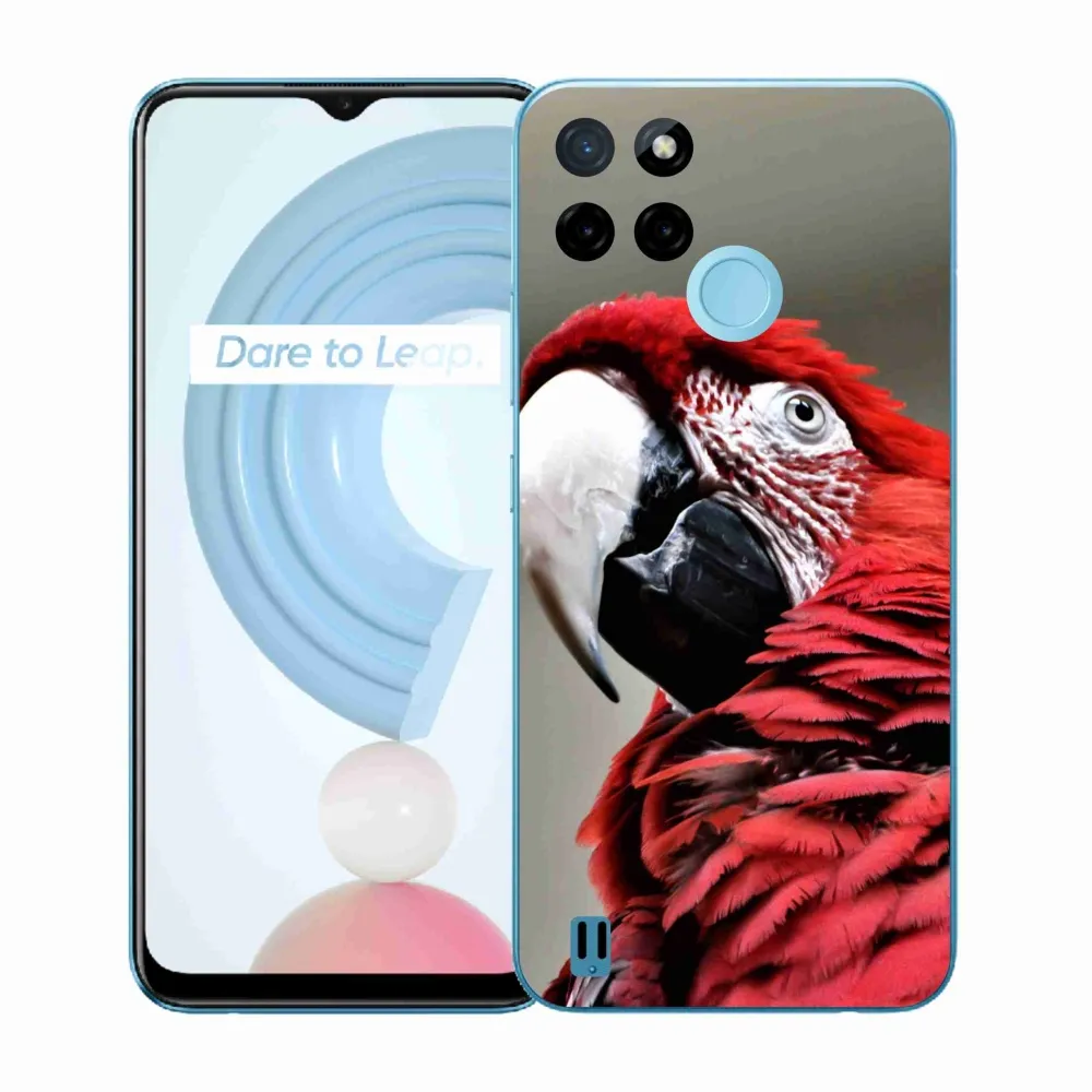 Pružný gelový obal mmCase s obrázkem na Realme C21Y/C25Y - papoušek ara červený