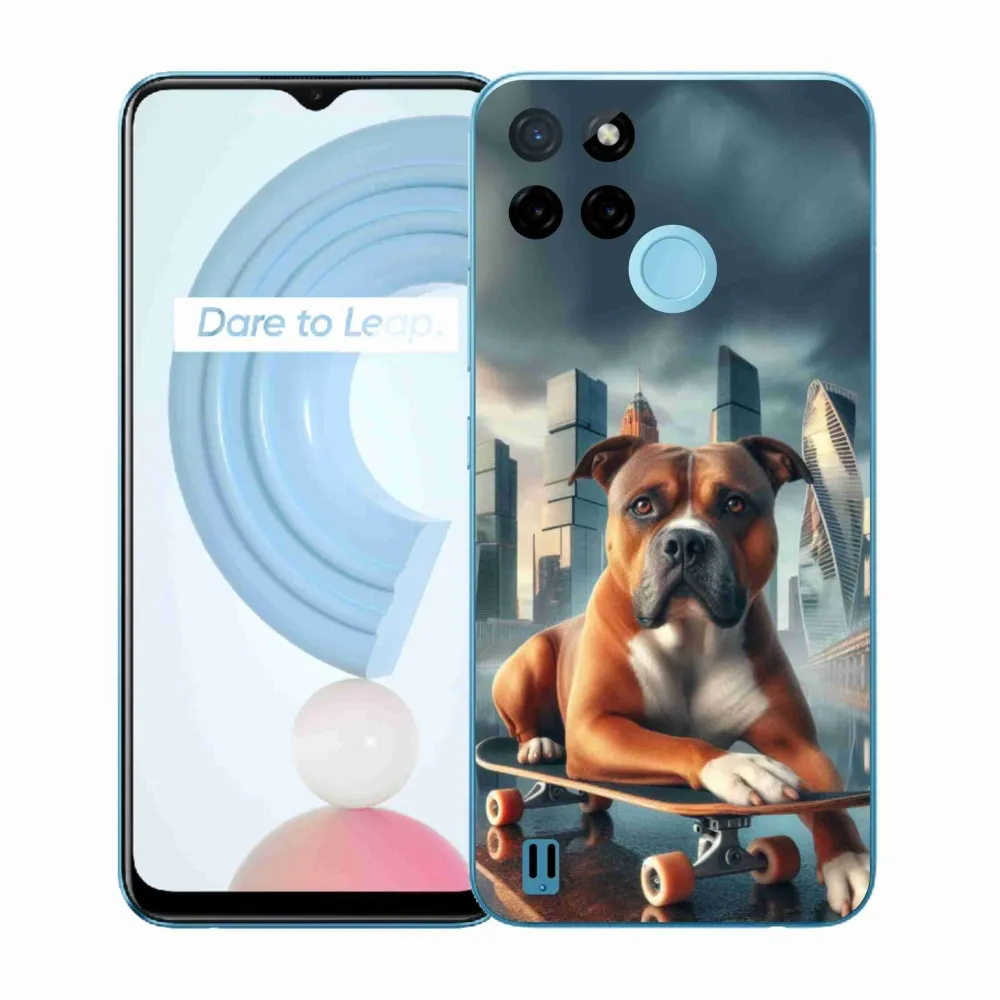 Psí pouzdro na Realme C21Y/C25Y - pes na skateboardu poskytuje všechny výhody gelových obalů, a to v zajímavém designu.