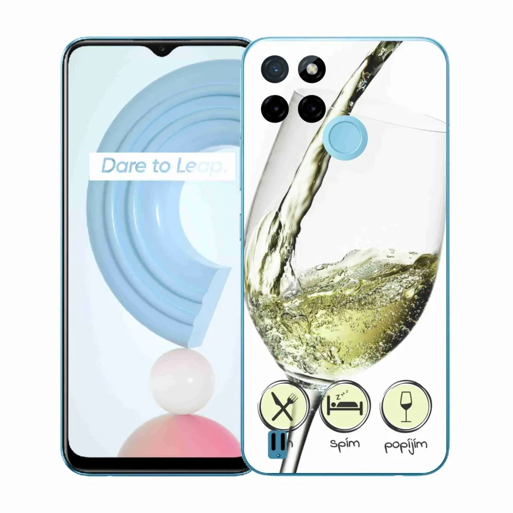 Pouzdro s motivem na Realme C21Y/C25Y - sklenička vína bílé poskytuje všechny výhody gelových obalů, a to v zajímavém designu.
