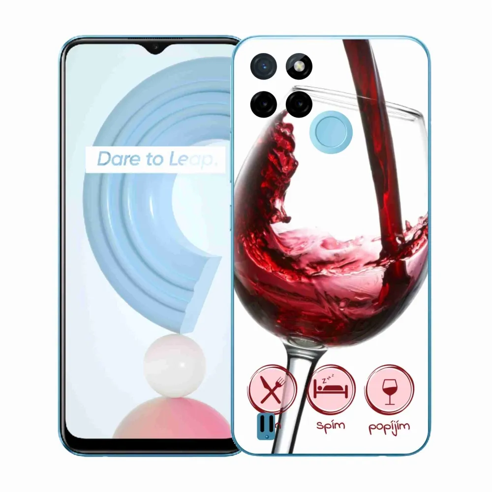 Pouzdro s motivem na Realme C21Y/C25Y - sklenička vína červené poskytuje všechny výhody gelových obalů, a to v zajímavém designu.