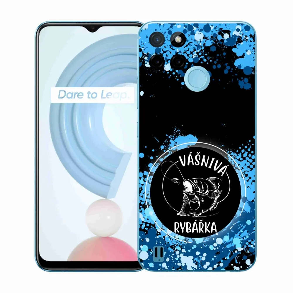 Pouzdro pro rybáře na Realme C21Y/C25Y - vášnivá rybářka černé pozadí poskytuje všechny výhody gelových krytů, a to v zajímavém designu.