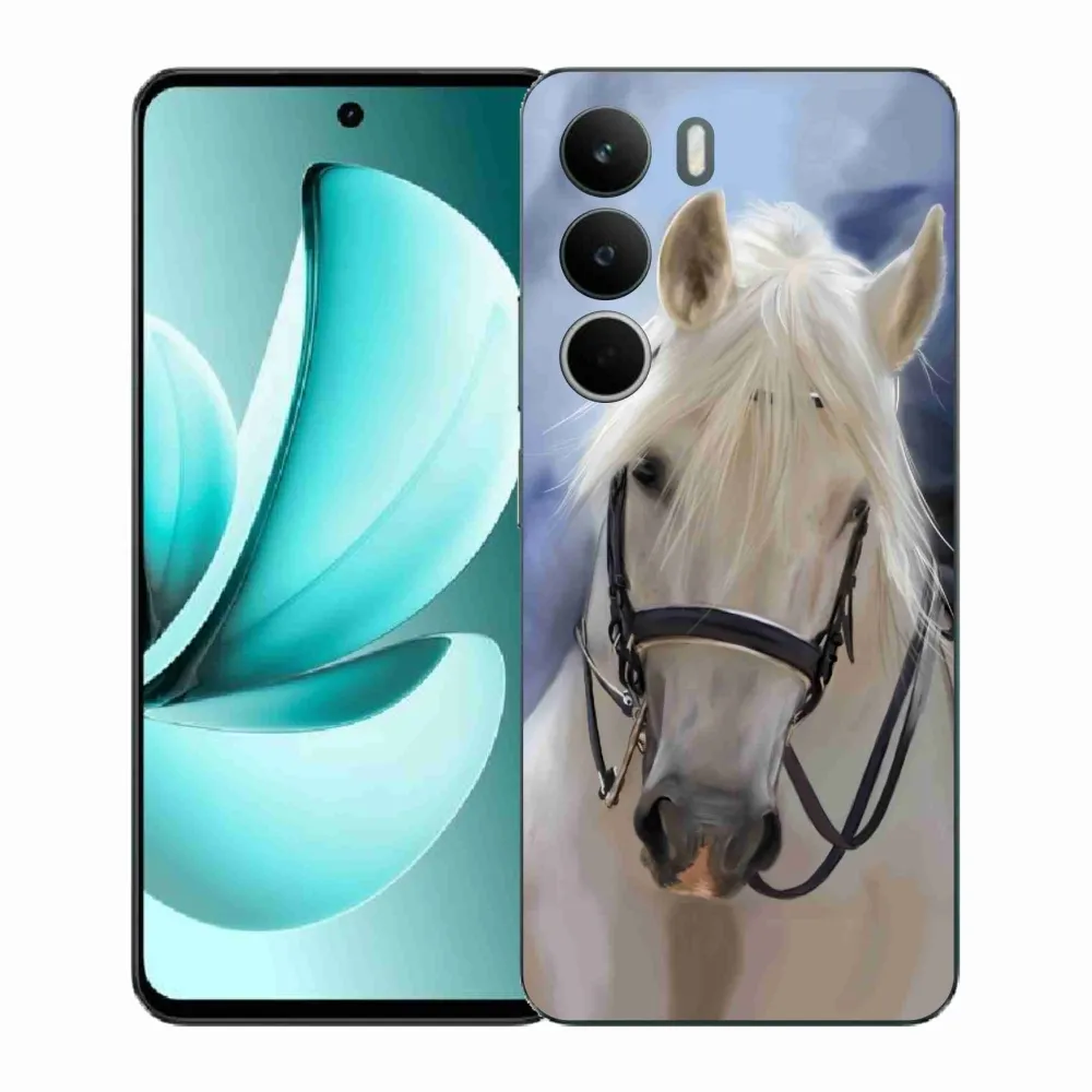 Pouzdro s motivem koně na Realme C71 - bílý kůň poskytuje všechny výhody gelových krytů, a to v zajímavém designu.