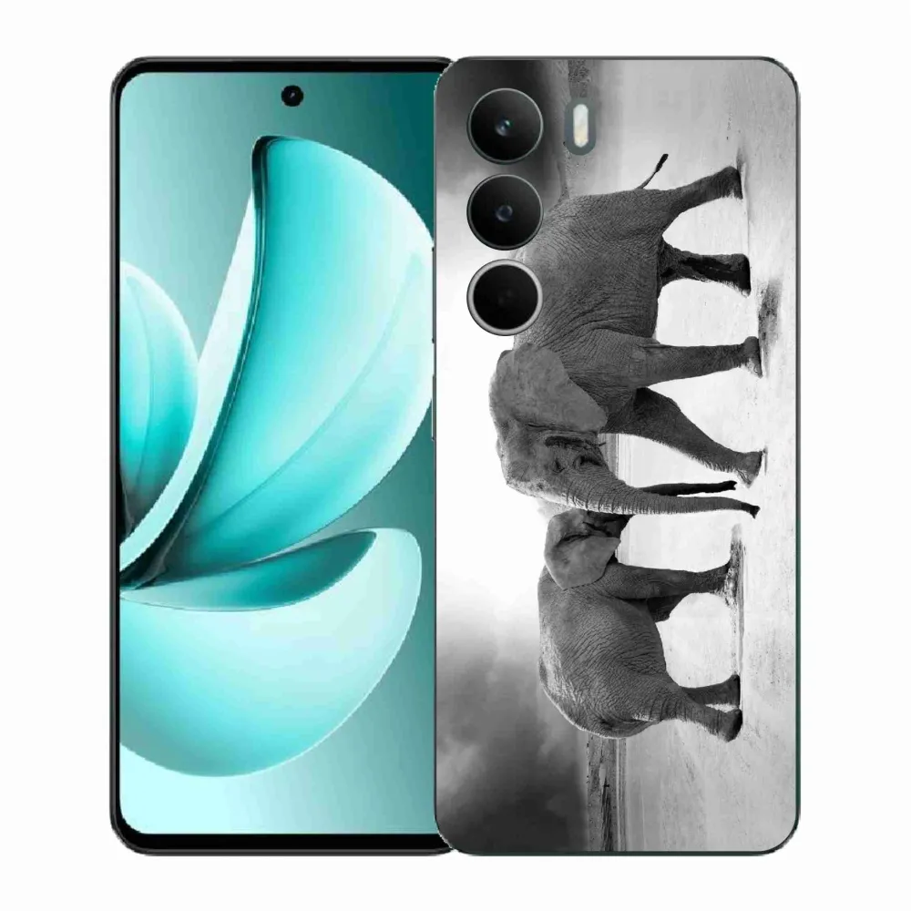 Zvířecí pouzdro na Realme C71 - černobílí sloni poskytuje všechny výhody gelových obalů, a to v zajímavém designu.