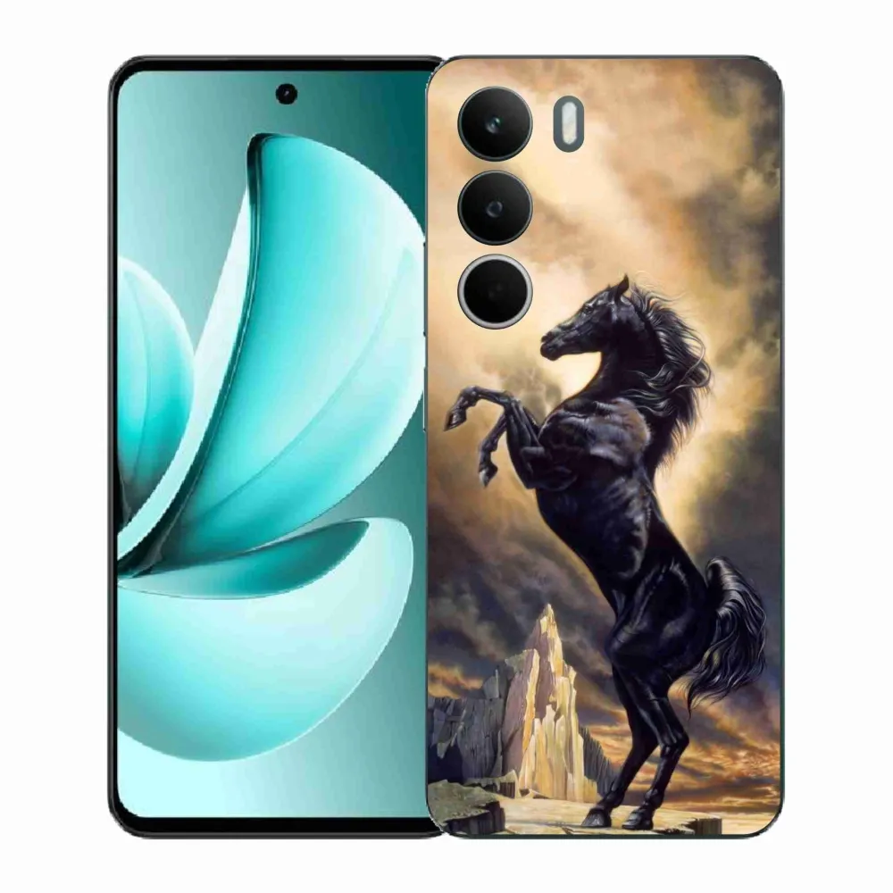 Pružný gelový obal mmCase s obrázkem na Realme C71 - černý kreslený kůň
