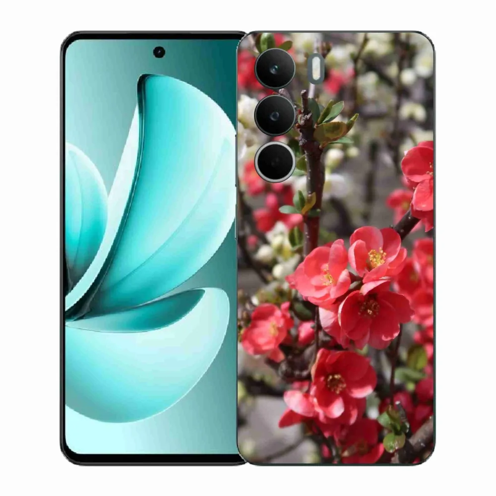Květinové pouzdro na Realme C71 - červené květy poskytuje všechny výhody gelových obalů, a to v zajímavém designu.