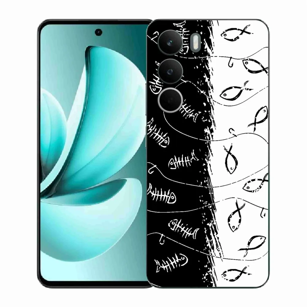 Pouzdro pro rybáře na Realme C71 - kostry a rybky poskytuje všechny výhody gelových krytů, a to v zajímavém designu.