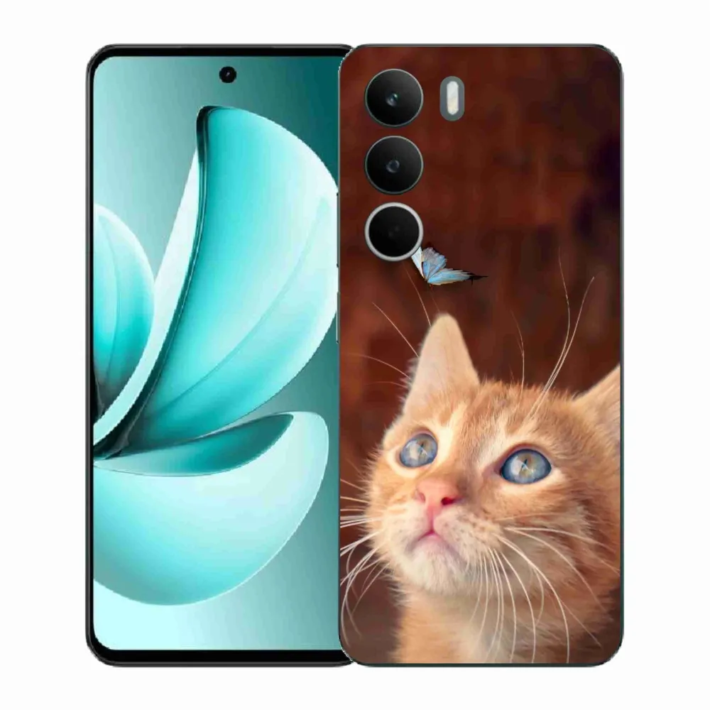 Pružný gelový obal mmCase s obrázkem na Realme C71 - motýl a kotě