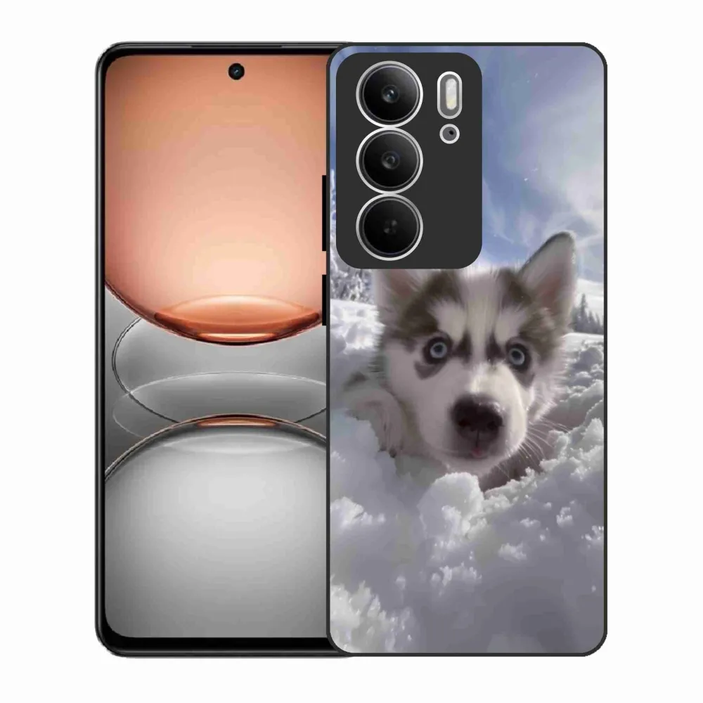 Psí pouzdro na Realme C75 - husky ve sněhu poskytuje všechny výhody gelových obalů, a to v zajímavém designu.