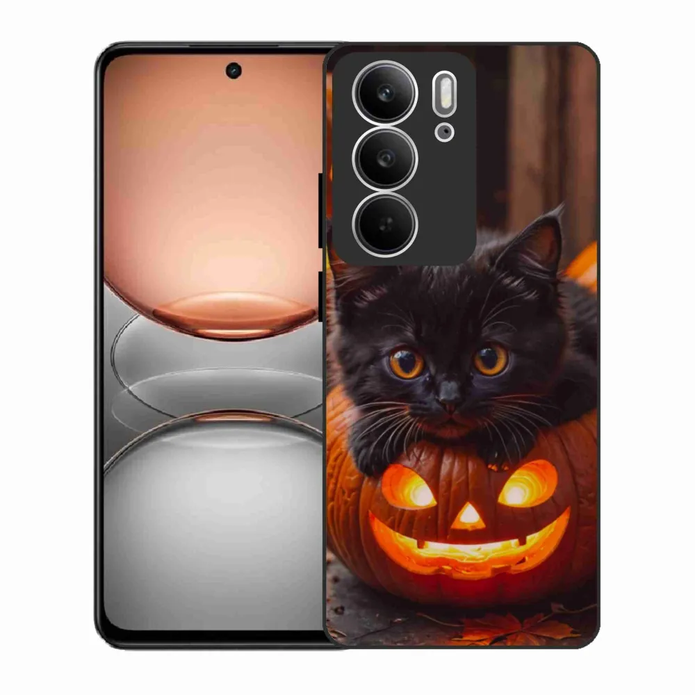 Kočičí pouzdro na Realme C75 - kotě a dýně poskytuje všechny výhody gelových obalů, a to v zajímavém designu.