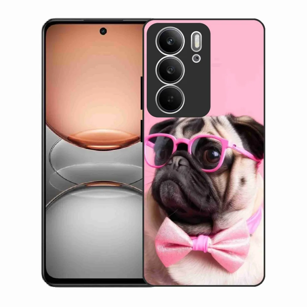 Psí pouzdro na Realme C75 - stylový mops poskytuje všechny výhody gelových obalů, a to v zajímavém designu.
