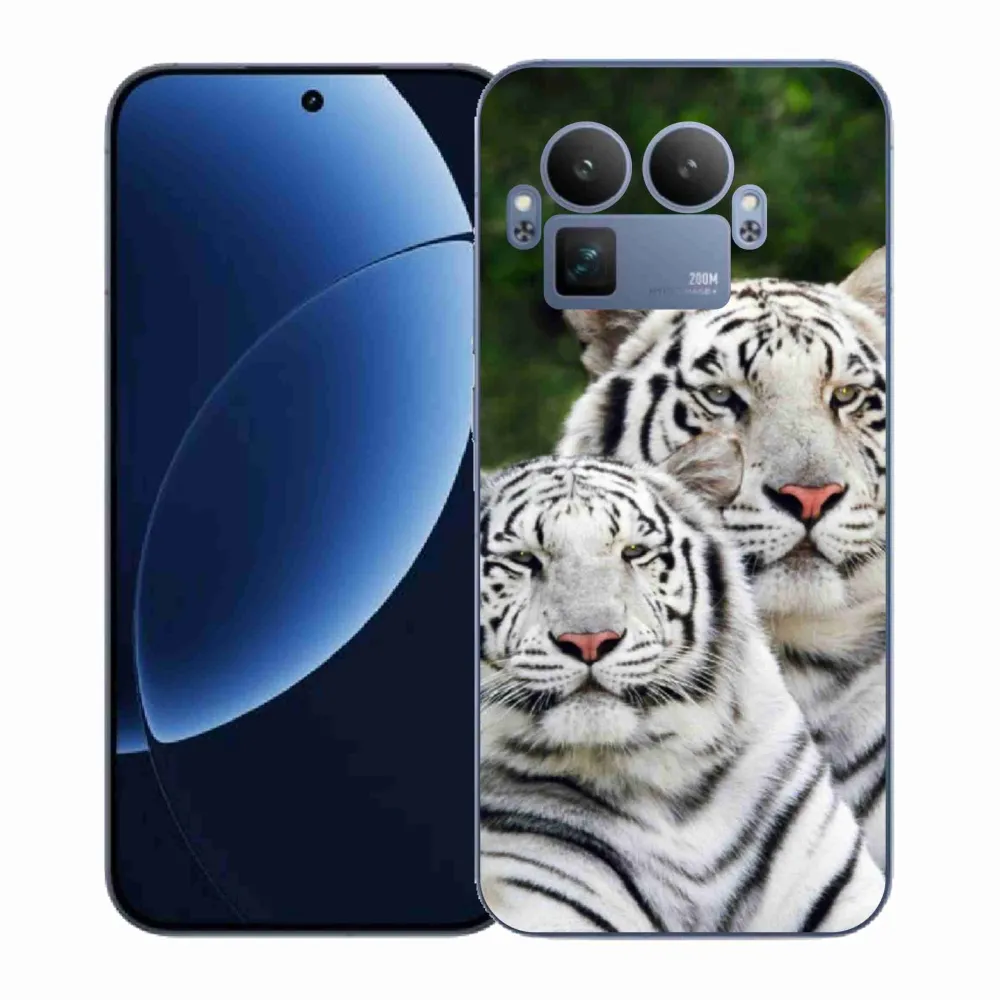 Pouzdro se šelmou na Realme GT 8 Pro - bílí tygři poskytuje všechny výhody gelových krytů, a to v zajímavém designu.