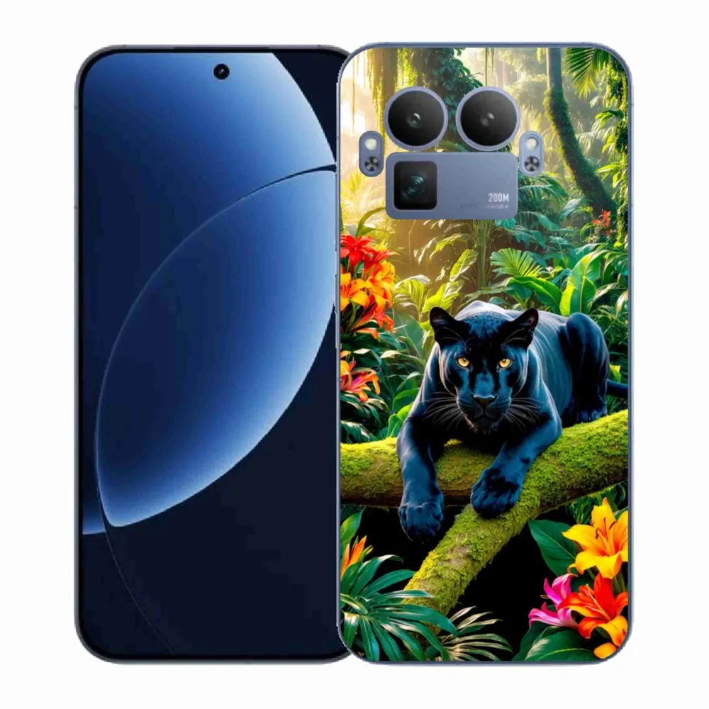 Zvířecí pouzdro na Realme GT 8 Pro - černý panter v džungli poskytuje všechny výhody gelových obalů, a to v zajímavém designu.