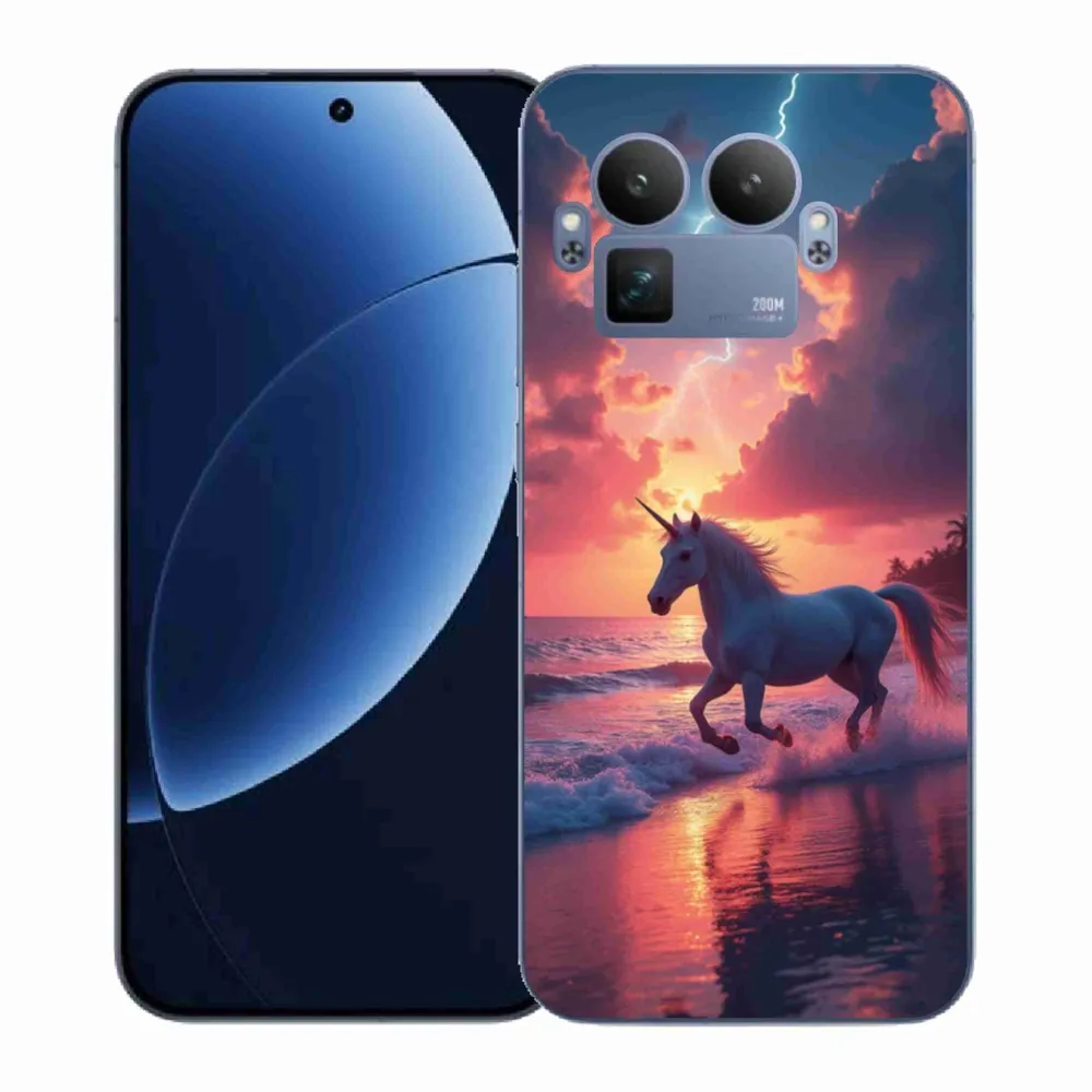 Pouzdro s motivem koně na Realme GT 8 Pro - jednorožec na pláži poskytuje všechny výhody gelových krytů, a to v zajímavém designu.
