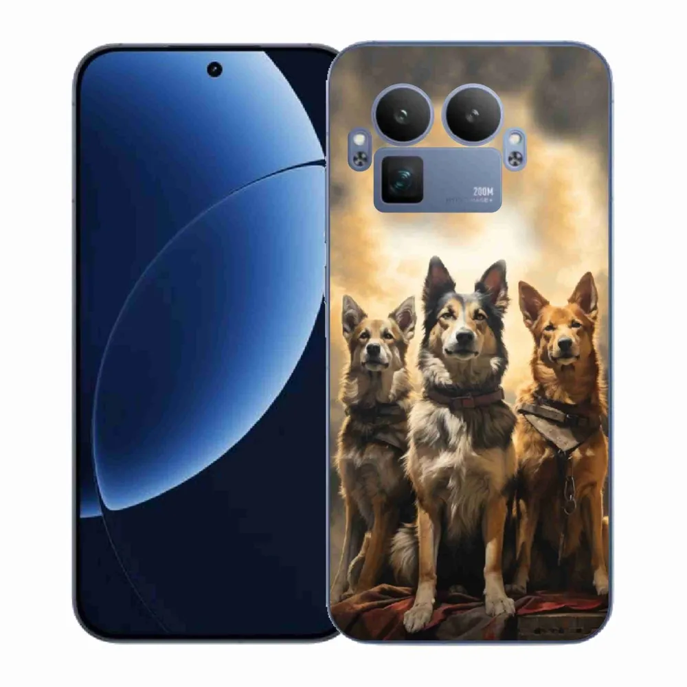 Psí pouzdro na Realme GT 8 Pro - tři psi poskytuje všechny výhody gelových krytů, a to v zajímavém designu.