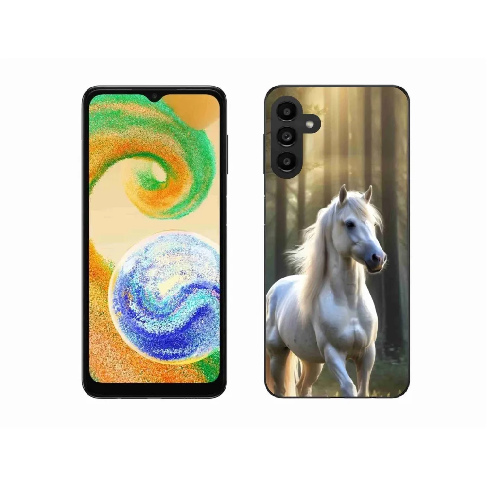 Pružný gelový obal mmCase s obrázkem na Samsung Galaxy A04s - bílý kůň 3
