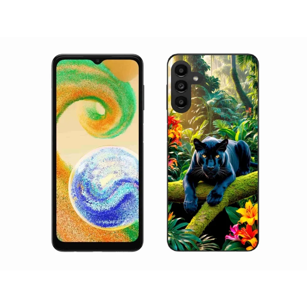 Zvířecí pouzdro na Samsung Galaxy A04s - černý panter v džungli poskytuje všechny výhody gelových obalů, a to v zajímavém designu.