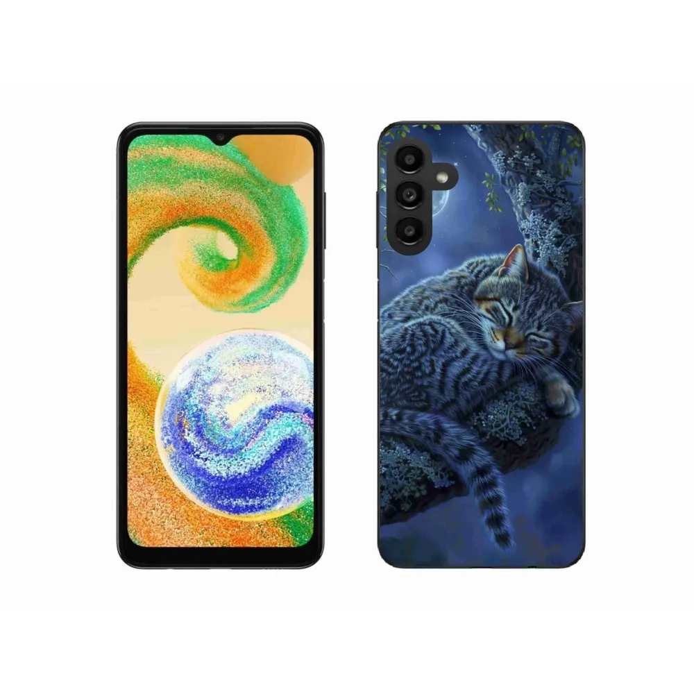 Kočičí pouzdro na Samsung Galaxy A04s - spící kočka poskytuje všechny výhody gelových obalů, a to v zajímavém designu.