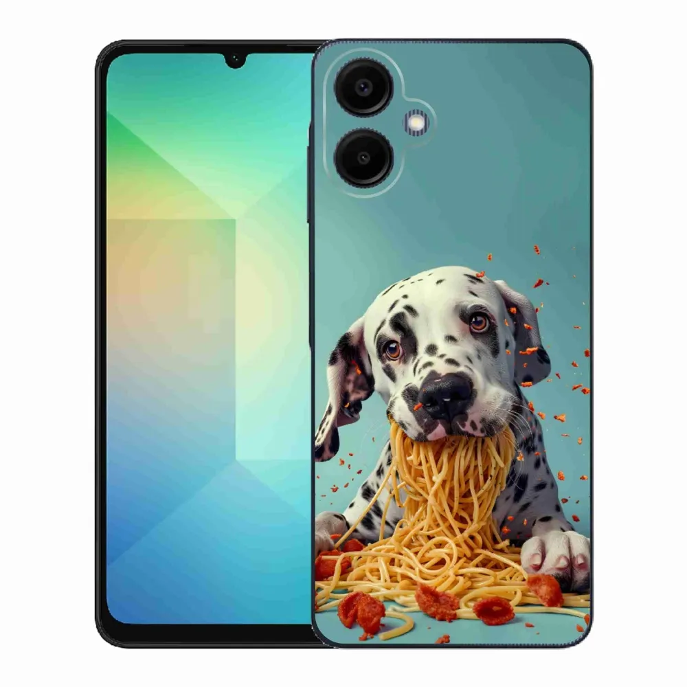 Pružný glový obal mmCase s obrázkem na Samsung Galaxy A06 - dalmatin a špagety