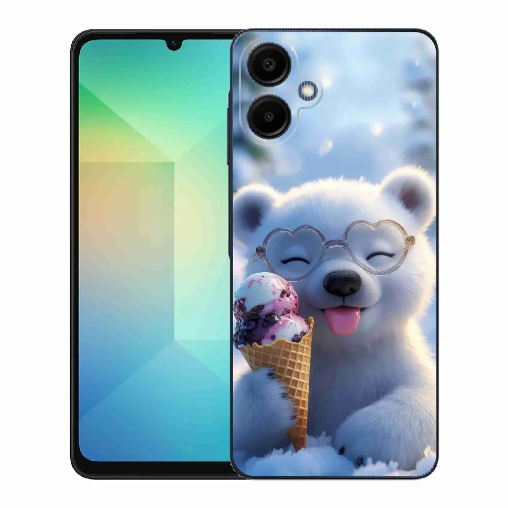Pružný glový obal mmCase s obrázkem na Samsung Galaxy A06 - medvídek se zmrzlinou