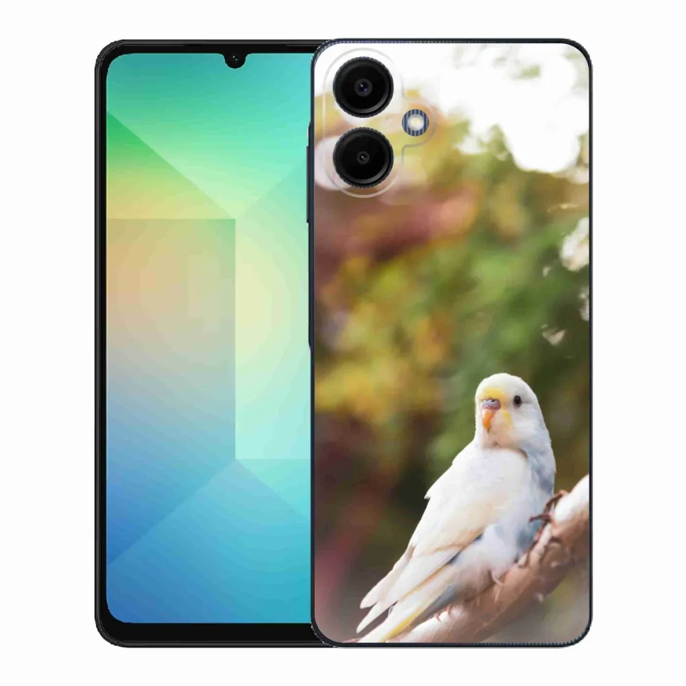 Zvířecí pouzdro na Samsung Galaxy A06 - papoušek andulka bílá poskytuje všechny výhody gelových obalů, a to v zajímavém designu.