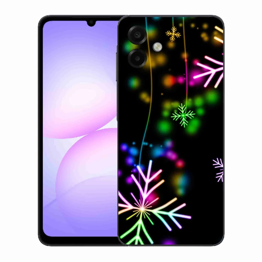 Vánoční pouzdro na Samsung Galaxy A07 4G - barevné vločky poskytuje všechny výhody gelových obalů, a to v zajímavém designu.