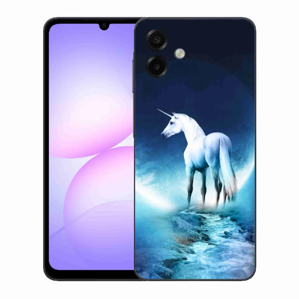 Pružný gelový obal mmCase s obrázkem na Samsung Galaxy A07 4G - bílý jednorožec