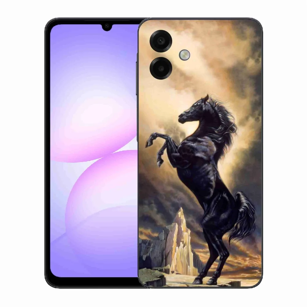Pružný gelový obal mmCase s obrázkem na Samsung Galaxy A07 4G - černý kreslený kůň