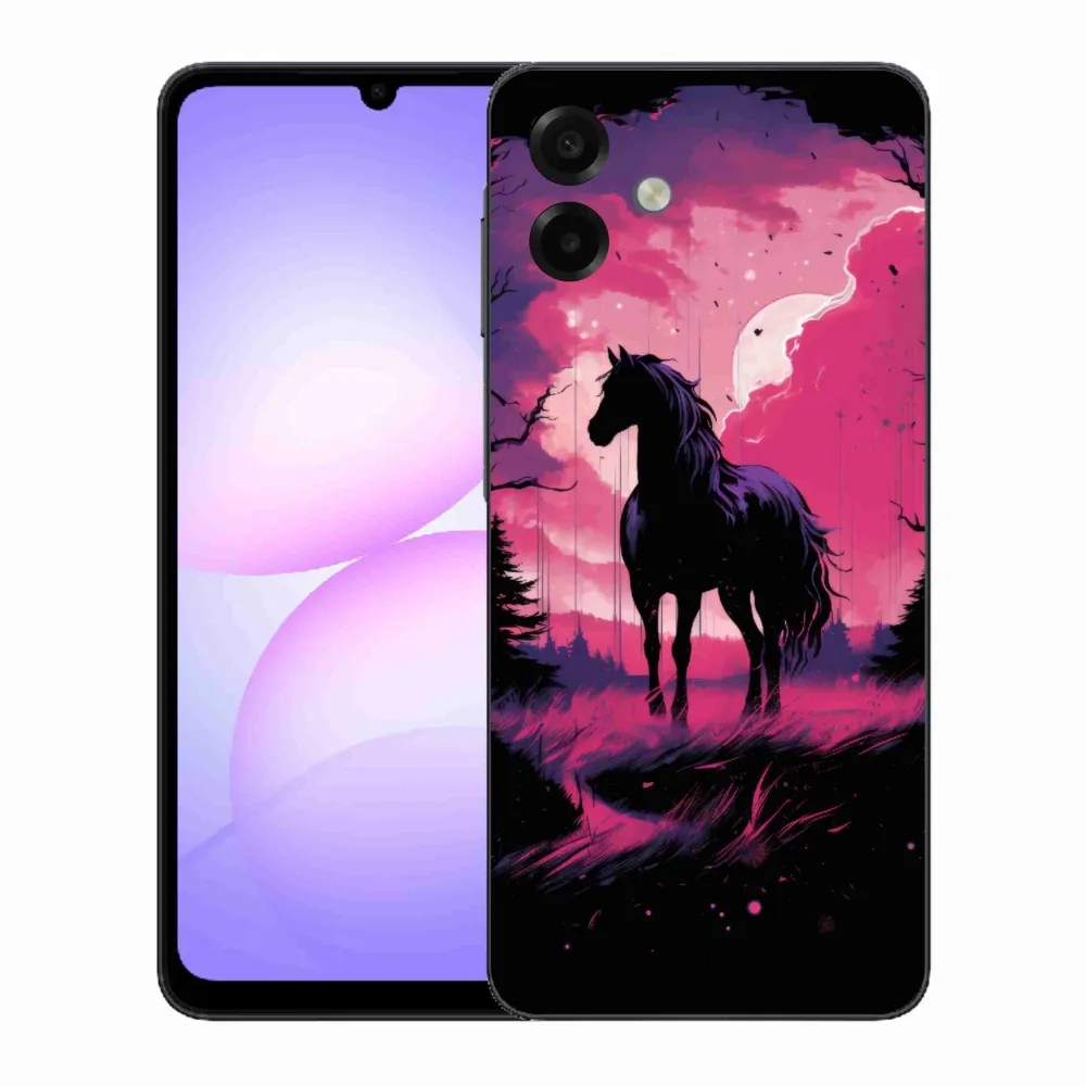 Pružný gelový obal mmCase s obrázkem na Samsung Galaxy A07 4G - černý kreslený kůň 1