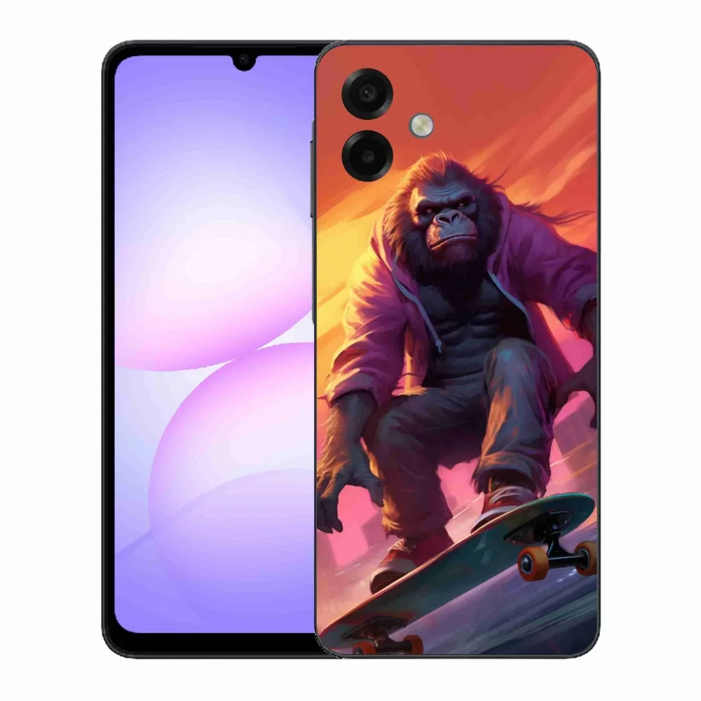 Zvířecí pouzdro na Samsung Galaxy A07 4G - gorila na skateboardu poskytuje všechny výhody gelových obalů, a to v zajímavém designu.