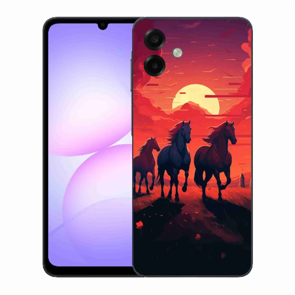Pružný gelový obal mmCase s obrázkem na Samsung Galaxy A07 4G - koně a západ slunce
